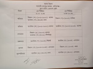 একাদশ শ্রেণির ক্লাস রুটিন ও অন্যান্য
